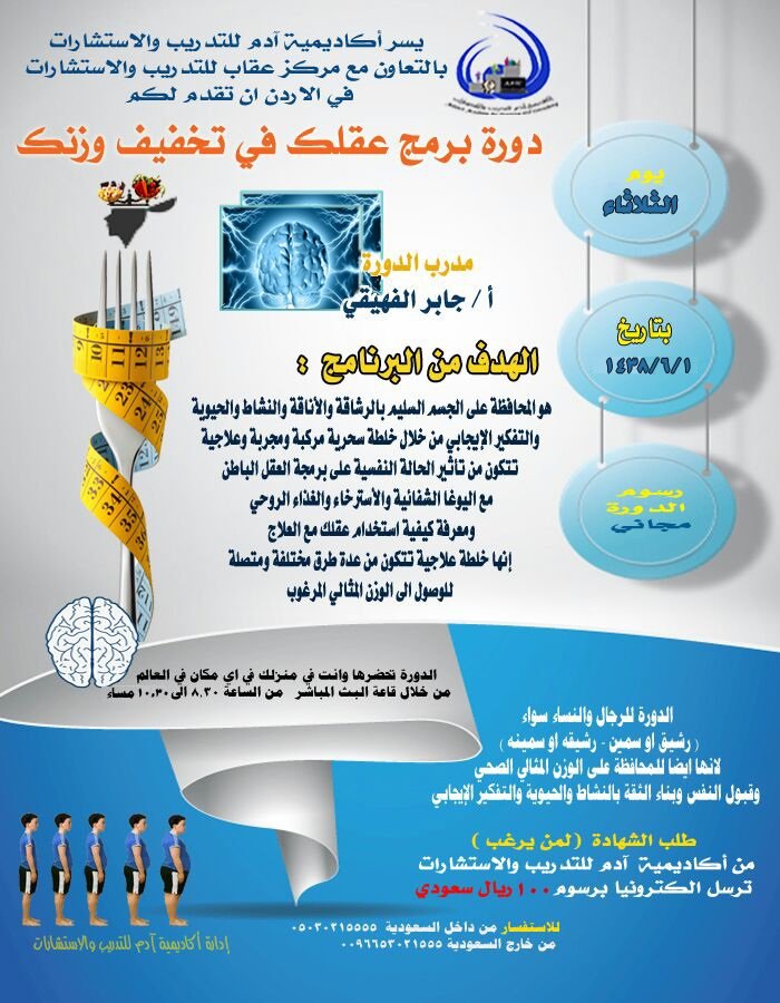 Uzivatel اكاديمية ادم للتدريب Na Twitteru عن بعد برمج عقلك في تخفيف وزنك للمدرب جابر الفهيقي