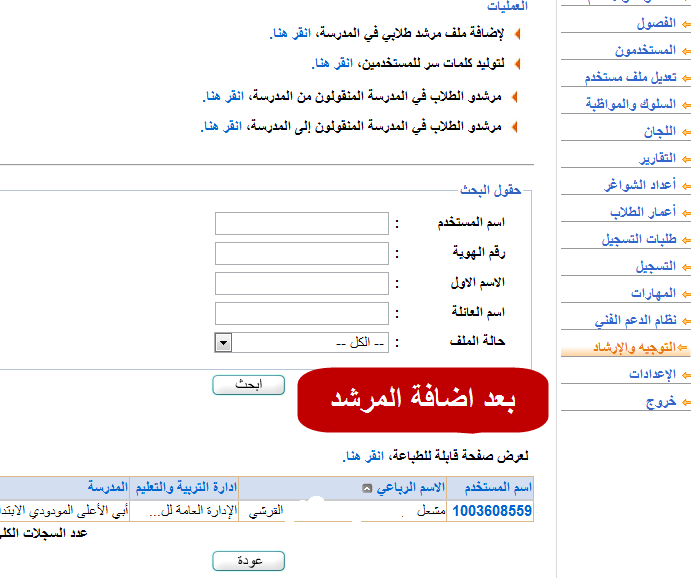 وحدة التوجيه والإرشاد وسط للمساعدة برامجي الارشادية بنظام نور