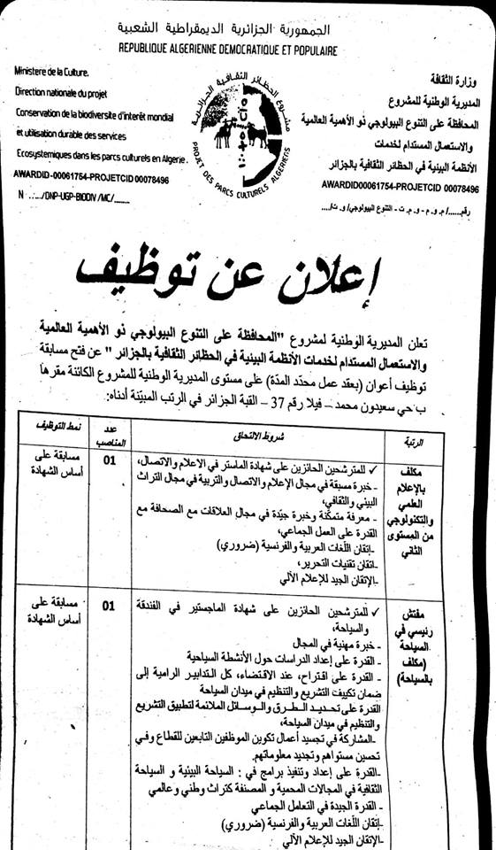 إعلان توظيف في وزارة الثقافة في المديرية الوطنية للمشروع أفريل 2019 مدونة التوظيف في الجزائر Dzemploi