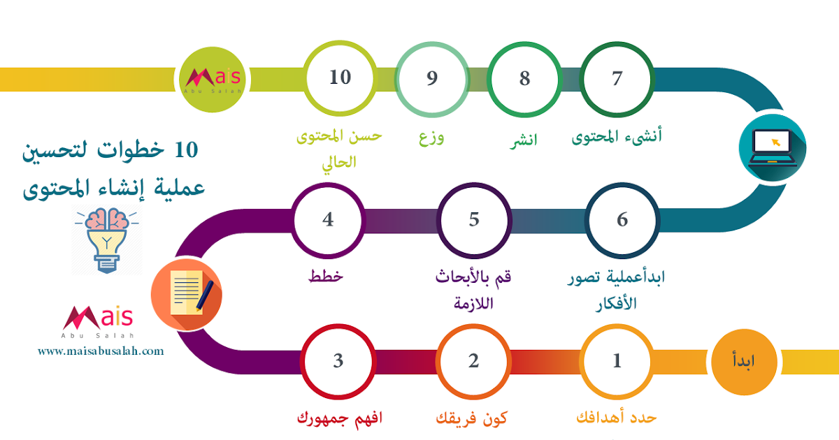 10 خطوات لتحسين عملية إنشاء المحتوى انفوجرافيك