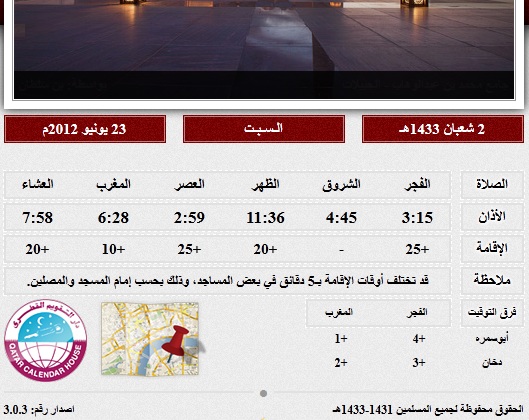 مواقيت الصلاة ومواعيد الأذان في دولة قطر صحيفة العرب القطرية Facebook