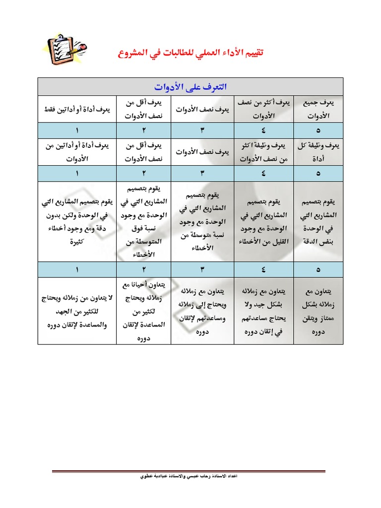 استخدام الروبرك نماذج التقييم في التعليم
